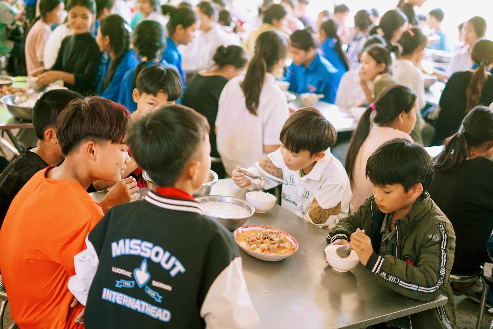 Bữa cơm của trẻ em vùng sâu vùng xa được hỗ trợ bởi dự án Nuôi em – Ảnh: Fanpage Nuôi em